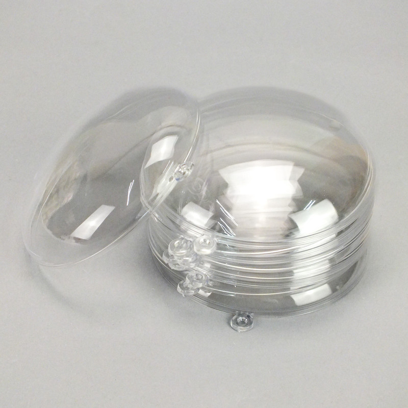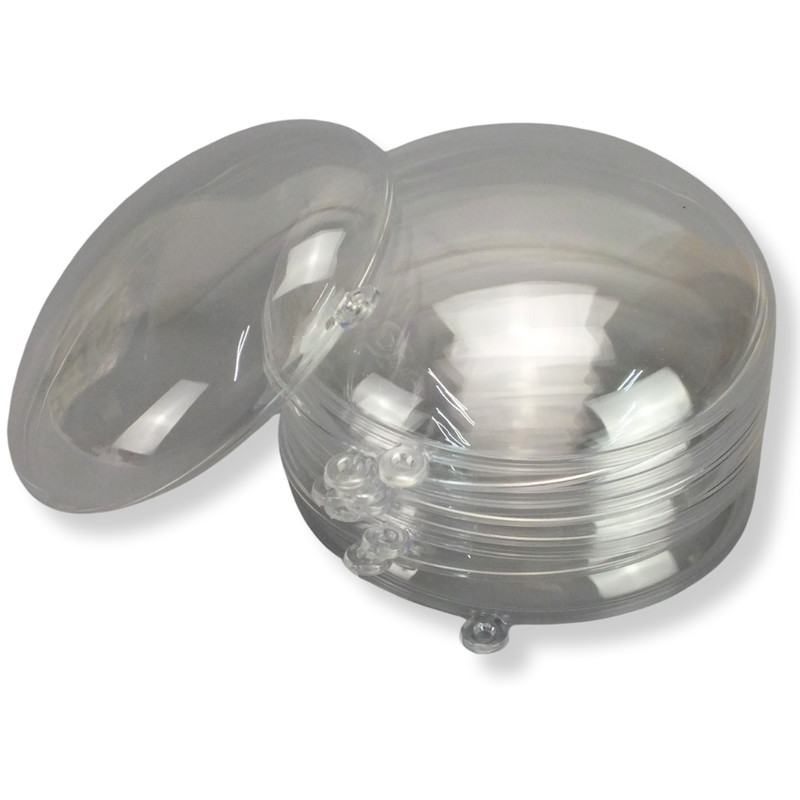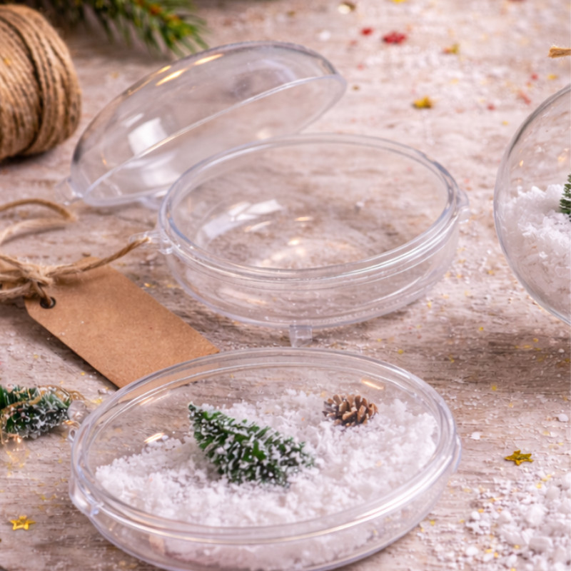 A lapos műanyag ajándéktartó gömb 11 cm-es méretben különleges és sokoldalúan használható dekorációs elem. Ideális apró ajándékok, meglepetések vagy egyedi díszítések elhelyezésére. Könnyű, mégis tartós műanyagból készült, átlátszó kialakítása lehetővé teszi a belső tartalom látványos megjelenítését. Felhasználható ünnepi dekorációkhoz, ajándékcsomagoláshoz vagy kreatív projektekhez. Az 5 darabos csomag praktikus választás kisebb és nagyobb dekorációs feladatokhoz egyaránt. Könnyen díszíthető, tölthető és kombinálható más dekorációs elemekkel.