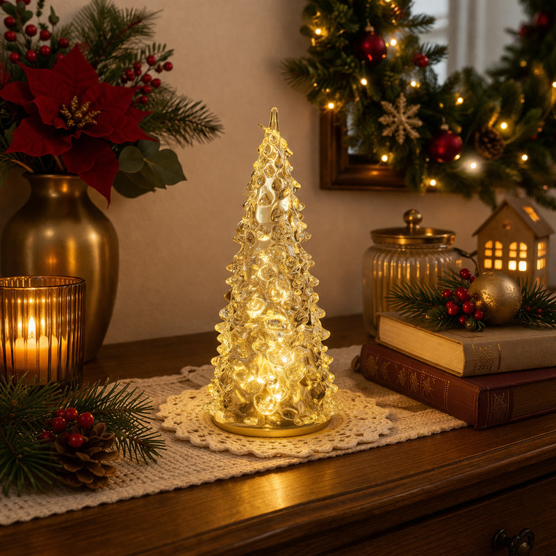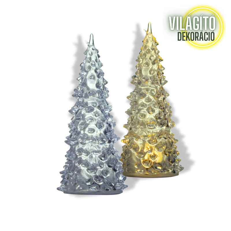Világítós akril karácsonyfa, áttetsző anyagával finoman vezeti a fényt. Modern, mégis meghitt kiegészítője lehet otthonodnak, asztalnak vagy kirakatnak. A termék elemmel együtt kerül forgalomba; az elem élettartamára garanciát nem vállalunk, előfordulhat, hogy rövid időn belül cserélni szükséges.