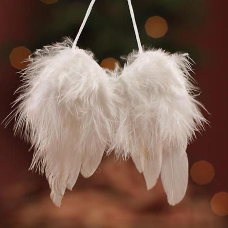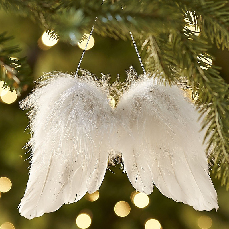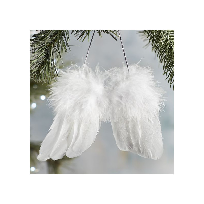 Tollakból álló, bolyhos tetejű angyalszárny dekorációs kiegészítő, akasztóval.