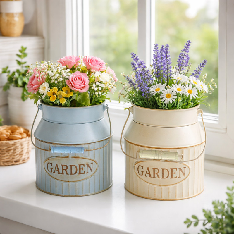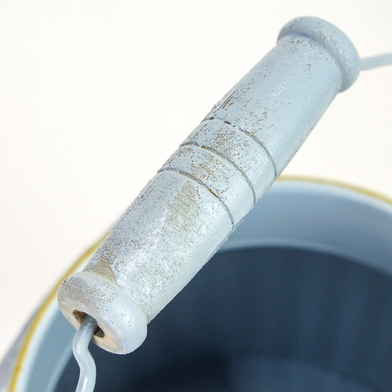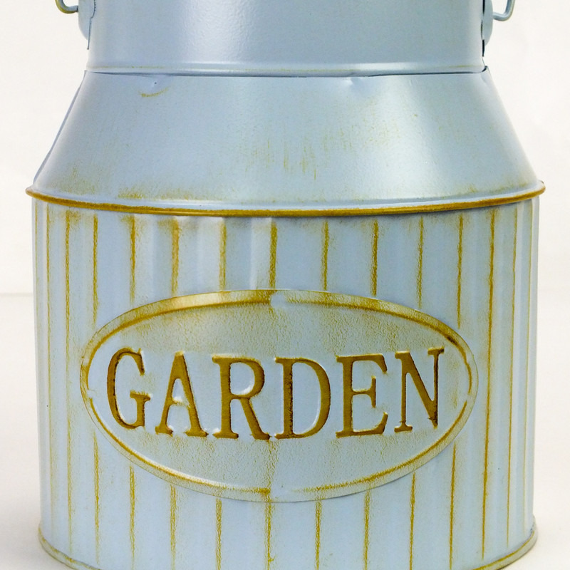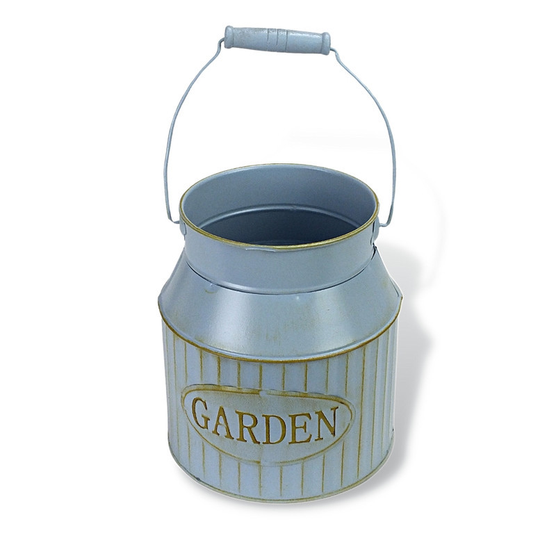 "Garden" feliratos bádog kaspó, fa fogantyús füllel.