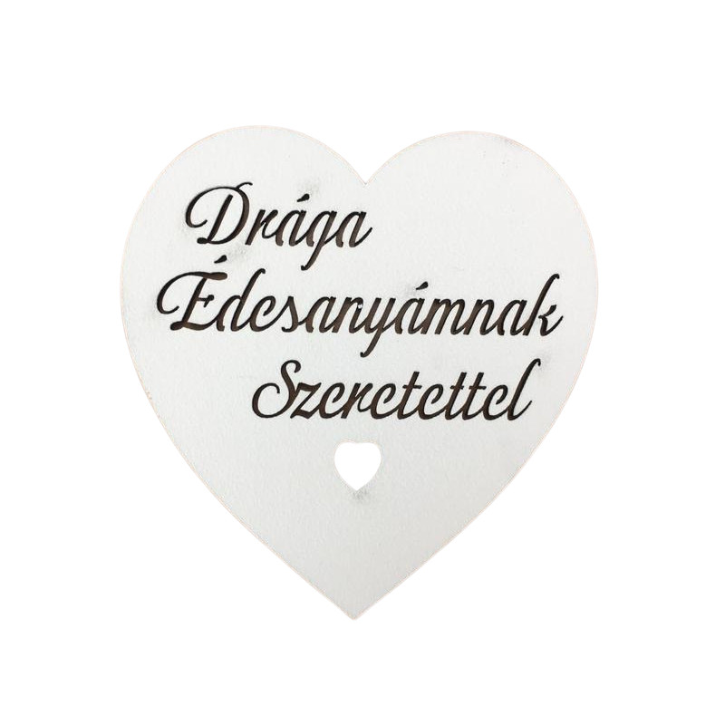 Fa - "Drága Édesanyámnak Szeretettel" szív fehér 10cm