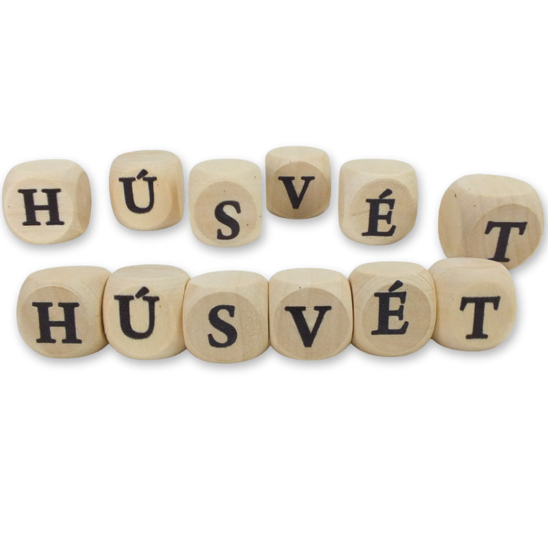 Ez a saját nyomtatású, natúr fa dobókocka 2 szett/csomagban érhető el, HÚSVÉT felirattal. Ideális dekorációkhoz, koszorúkhoz és kreatív húsvéti összeállításokhoz. Természetes anyagának és letisztult megjelenésének köszönhetően könnyen kombinálható más dekorációs elemekkel - alkoss kedvedre, és teremts ünnepi hangulatot otthonodban.
