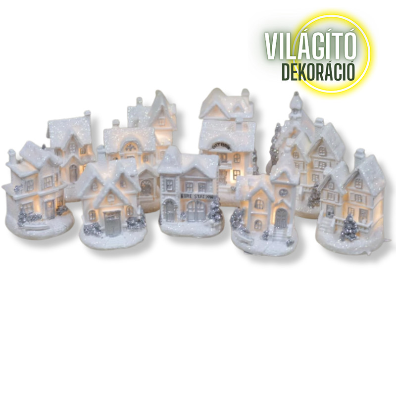 Elegáns és meghitt karácsonyi dekoráció, amely ragyogást visz az ünnepi otthonba. A fehér-ezüst színek letisztult harmóniája és a finom meleg fény különleges, békés hangulatot áraszt. Tökéletes választás az ünnepi asztalra, ablakpárkányra vagy a karácsonyi falura – igazi téli csoda kicsiben. Az ár egy házikóra vonatkozik! A készleten lévő házikókból. A termék elemmel együtt kerül forgalomba, azonban az elem élettartamára garanciát nem vállalunk. Előfordulhat, hogy az elemet rövid időn belül cserélni szükséges.