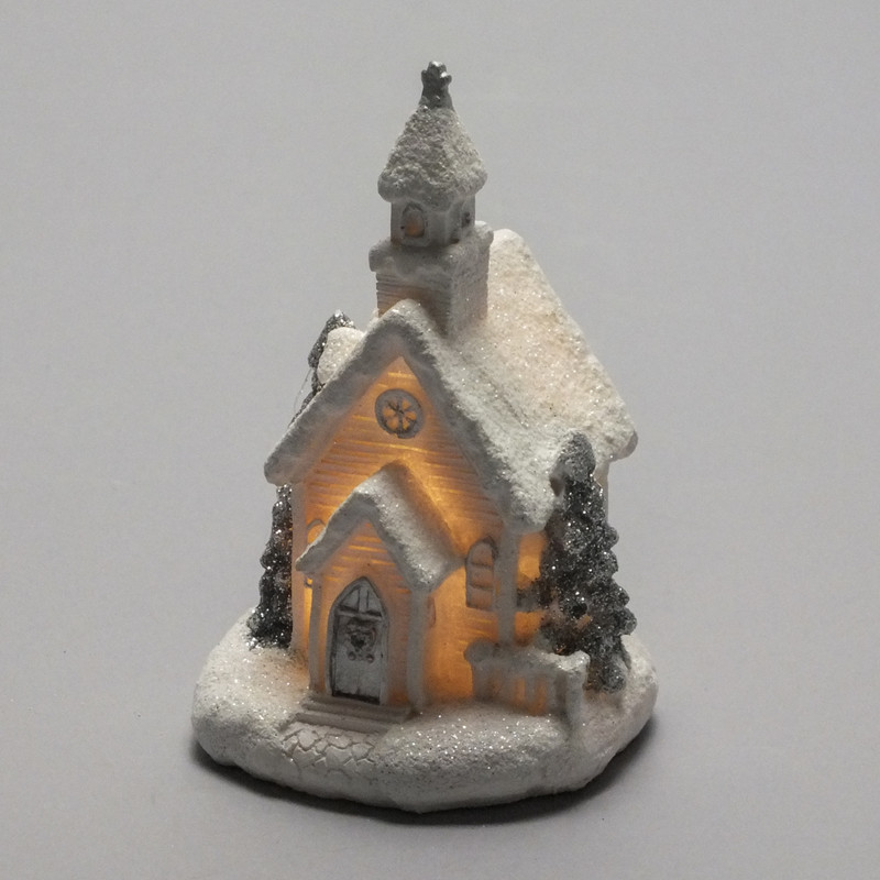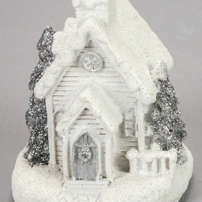 Fehér-ezüst világítós templom kicsi 1db