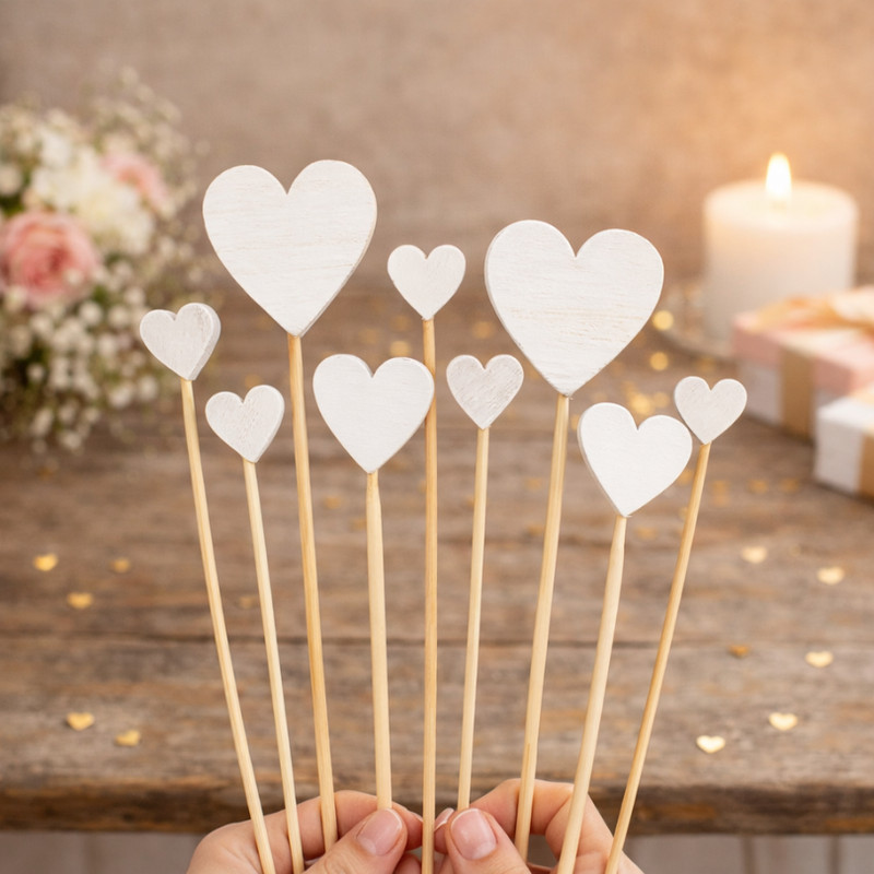 8mm vastag fa beszúrós szívek. 3 különböző méretben. Használhatod asztaldíszekhez, virágcsokrokba vagy kerti- és falidíszekhez. Születésnapra, évfordulóra és Valentin napra egyaránt alkalmas.