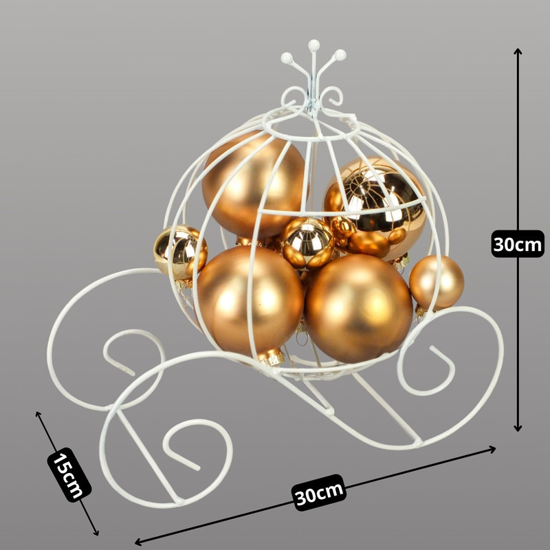 Ez a gyönyörű fehér színű fémből készült tökhintó luxust és eleganciát sugároz, tökéletes választás ünnepi alkalmakra vagy különleges dekorációkhoz. A pompás bevonat mesés megjelenést kölcsönöz a hintónak, ami bármilyen rendezvény kiemelt dekorációs eleme lehet. A klasszikus tökhintó forma csodásan kombinálható virágokkal, fényekkel és más kiegészítőkkel.