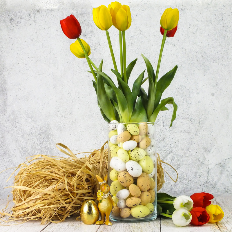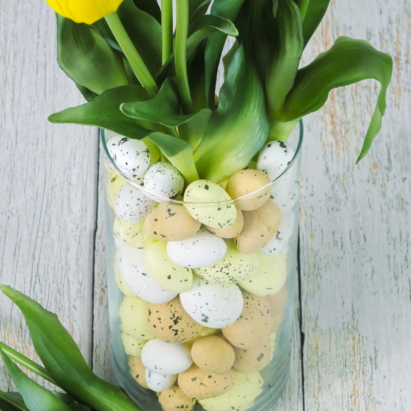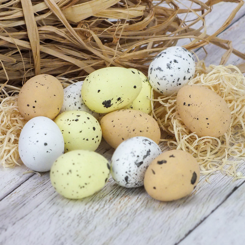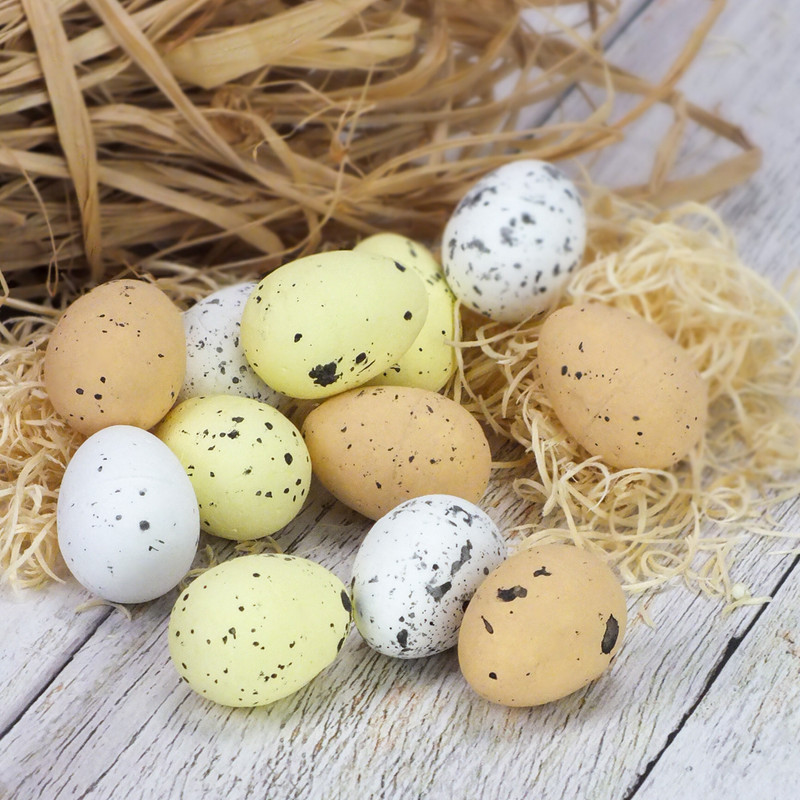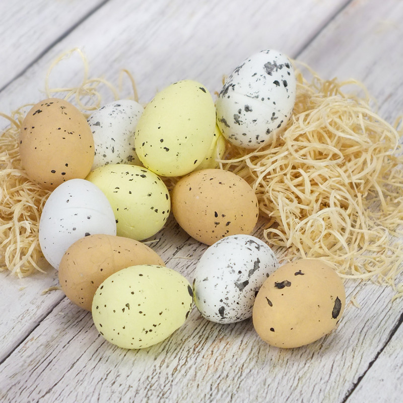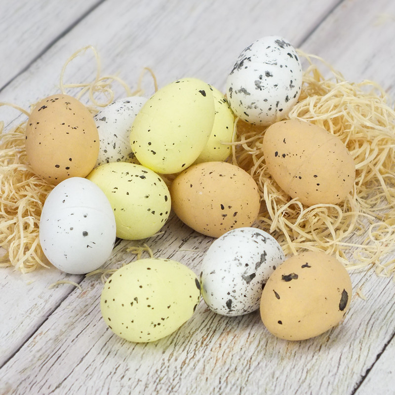 Festett polisztirol tojások Húsvéti dekorációkhoz, természetes színek.
