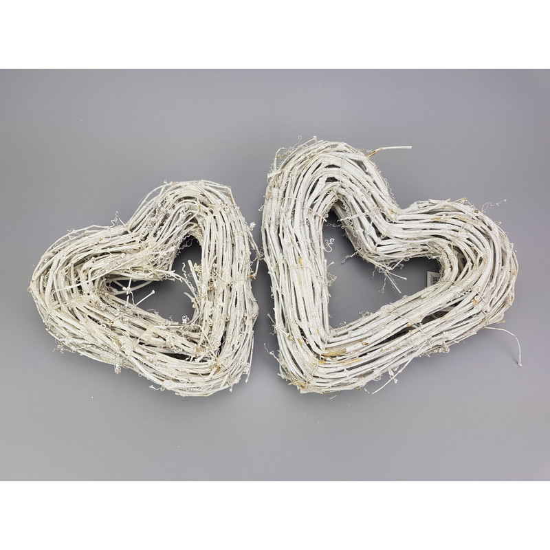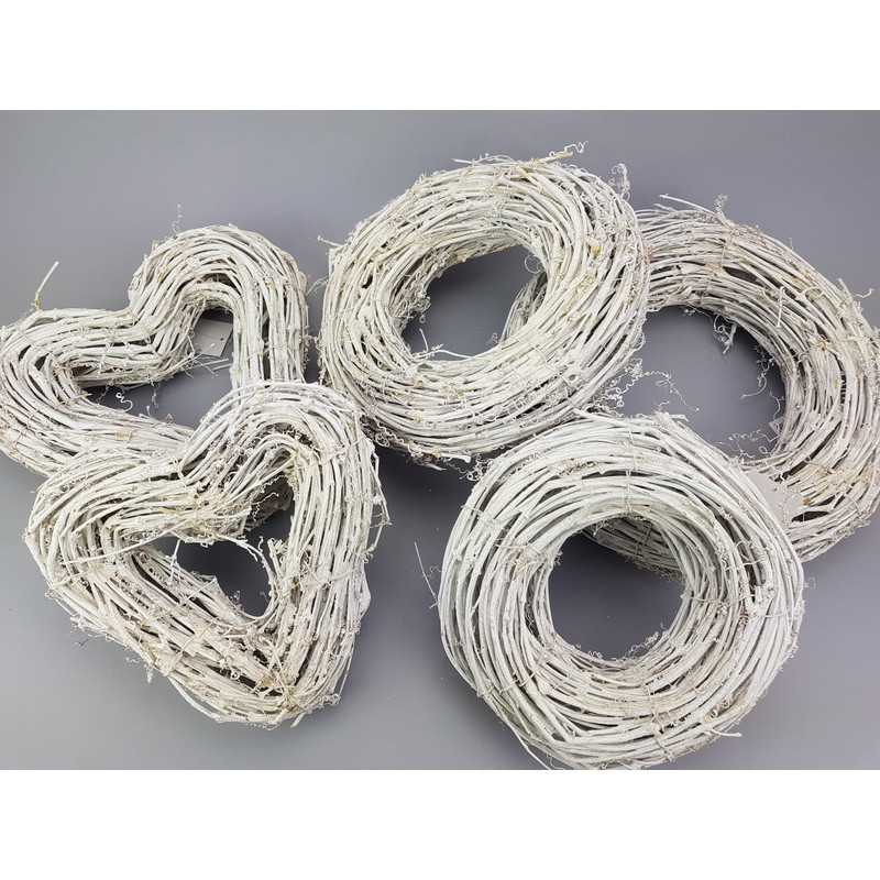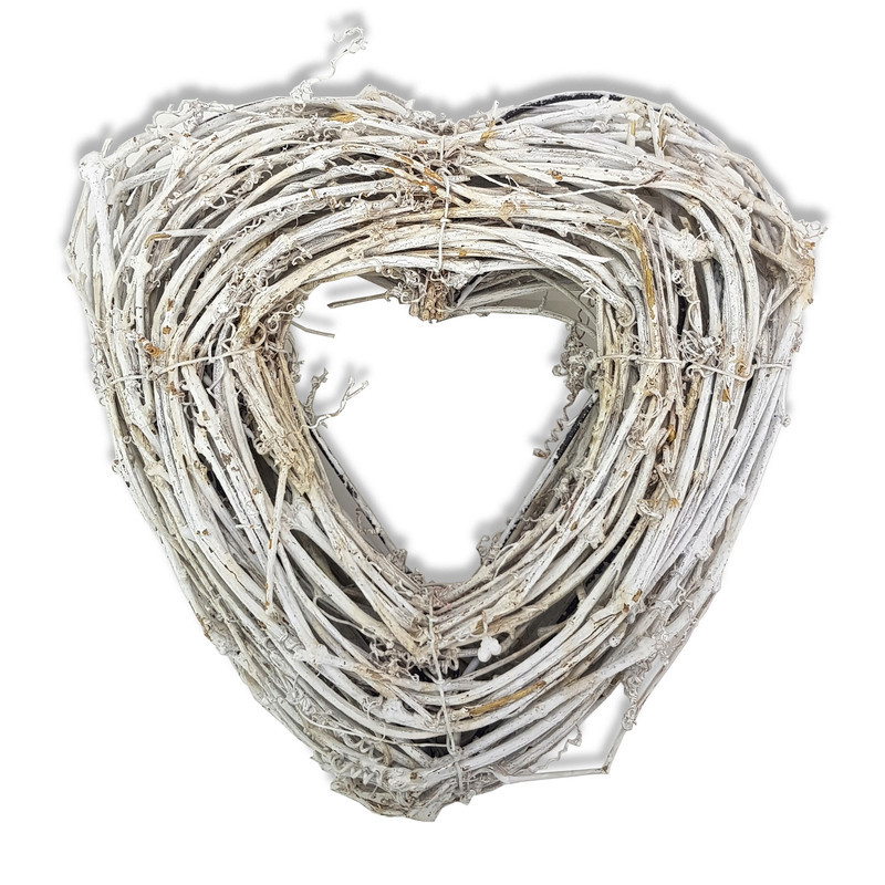 Könnyen díszíthető, szív alakú vessző alap. Ajtóra készített koszorú, beltéri vagy kültéri dekorhoz.