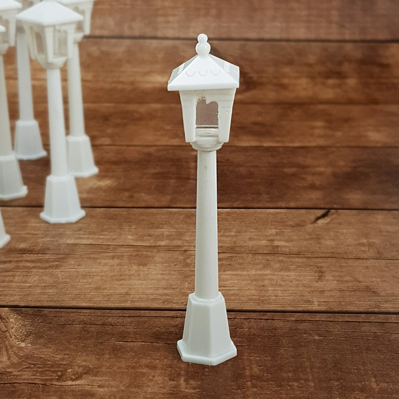 Fehér műanyag lámpaoszlop dekoráció, asztaldíszekhez, vagy nagyobb készítményekbe, makettekhez, esetleg önmagában. NEM világítós!
