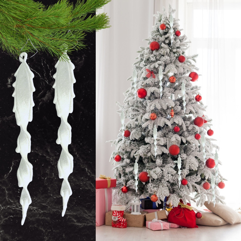 Csillámos jégcsap dísz karácsonyfára vagy kültéri-beltéri dekoráláshoz. Akasztó a csomagban.