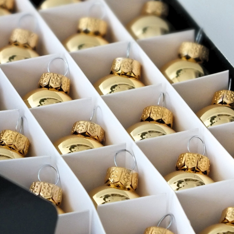 24 darabos karácsonyfadísz (akasztó nélkül). Egyszerűen beilleszthető téli hangulatú készítményekbe és karácsonyfára.