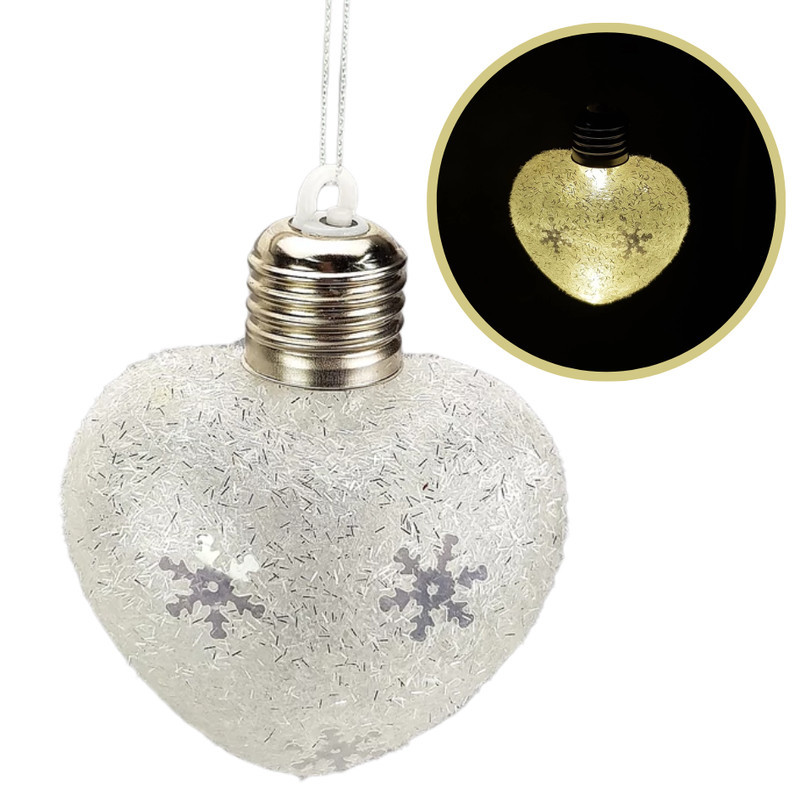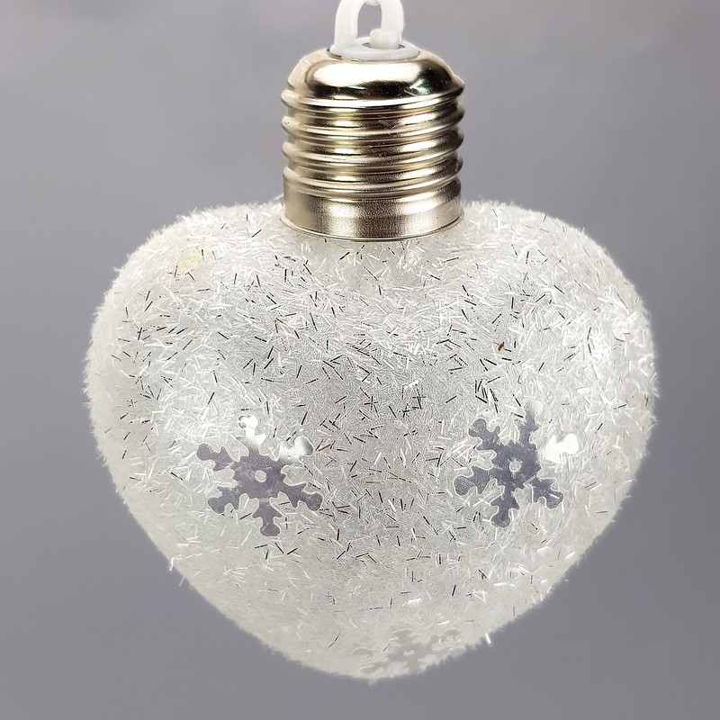 Ledes karácsonyfadísz dekoráció: hópehely flitteres díszítéssel és műhóval borítva. Meleg fényű LED izzó, 3db pici gombelem (tartozék).