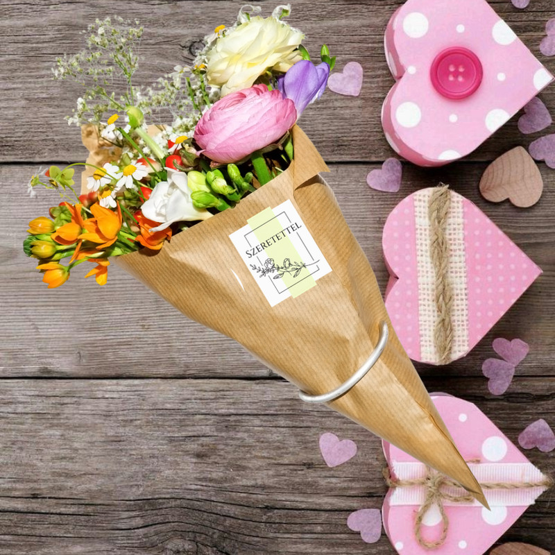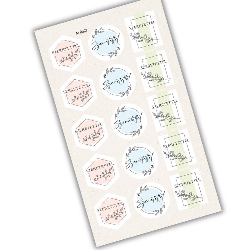 A Matrica - Szeretettel pasztell matricák 15db/lap saját gyártású termék, amely finom, harmonikus pasztell színeivel elegáns kiegészítője az ajándékcsomagolásnak és dekorációnak. A lapon található 15 darab matrica ideális borítékok, ajándékdobozok, tasakok lezárásához, valamint csokrok csomagolásához is tökéletes választás. Letisztult megjelenése miatt ünnepi alkalmakra, köszönőajándékokhoz vagy saját készítésű meglepetésekhez is kiválóan használható. Praktikus, könnyen felragasztható és igényes megoldás minden alkalomra.