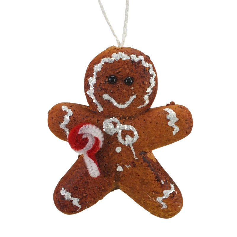 Mézeskalács figura karácsonyfadísz, akasztóval ellátva.