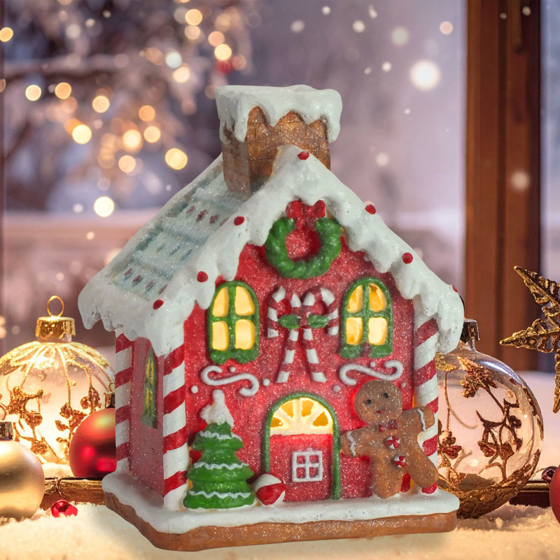 Varázsolj ünnepi hangulatot otthonodba ezzel a mézeskalács házikóval! A kéményes dekoráció és a meleg fények életre keltik a karácsonyi hangulatot, miközben a házikó zenélő funkciója még különlegesebbé teszi a díszt. Ideális asztali vagy polcos dekoráció, amely minden beltéri teret ünnepivé varázsol.
