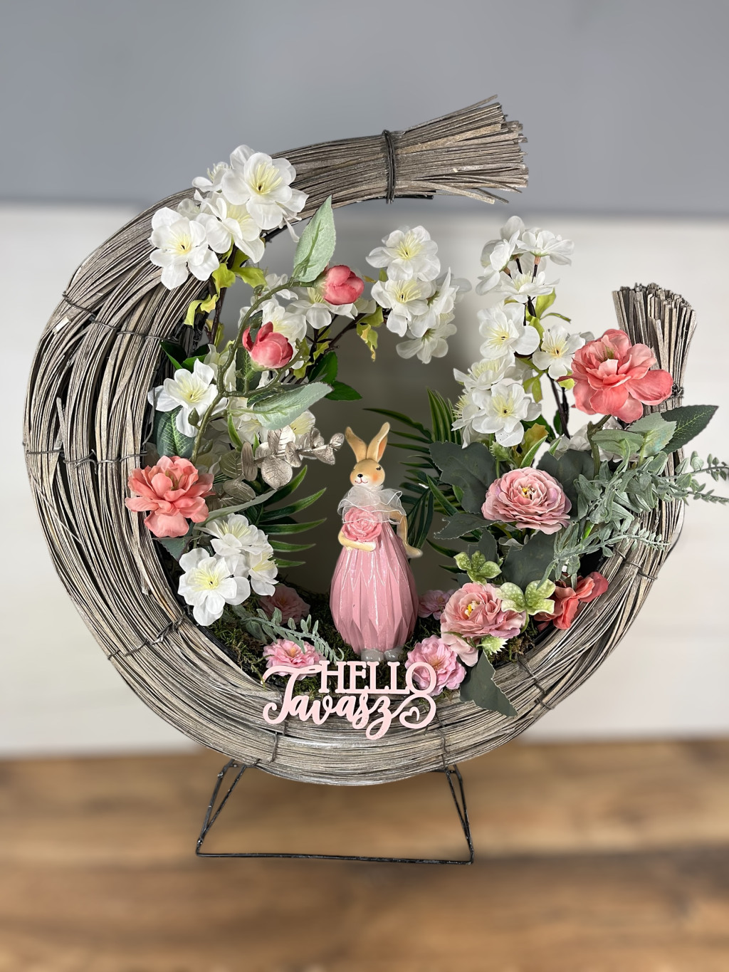 Az asztaldísz magassága 46 cm, szélessége 40 cm. Kész dekoráció!