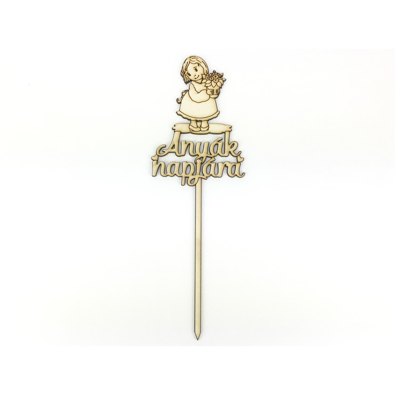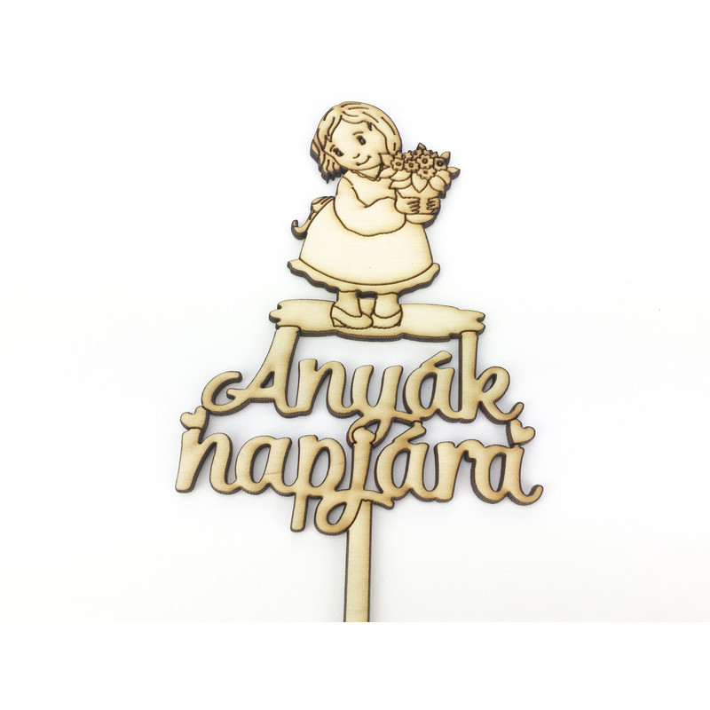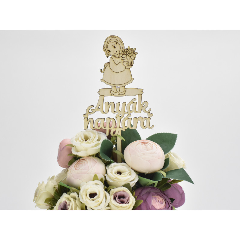 Natúr fa - Beszúrós felirat "Anyák napjára" kislányos