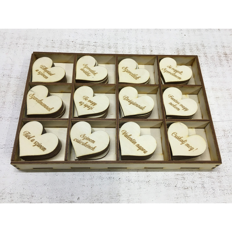 Natúr fa - Doboz gravírozott szívekkel 60db szív/csomag