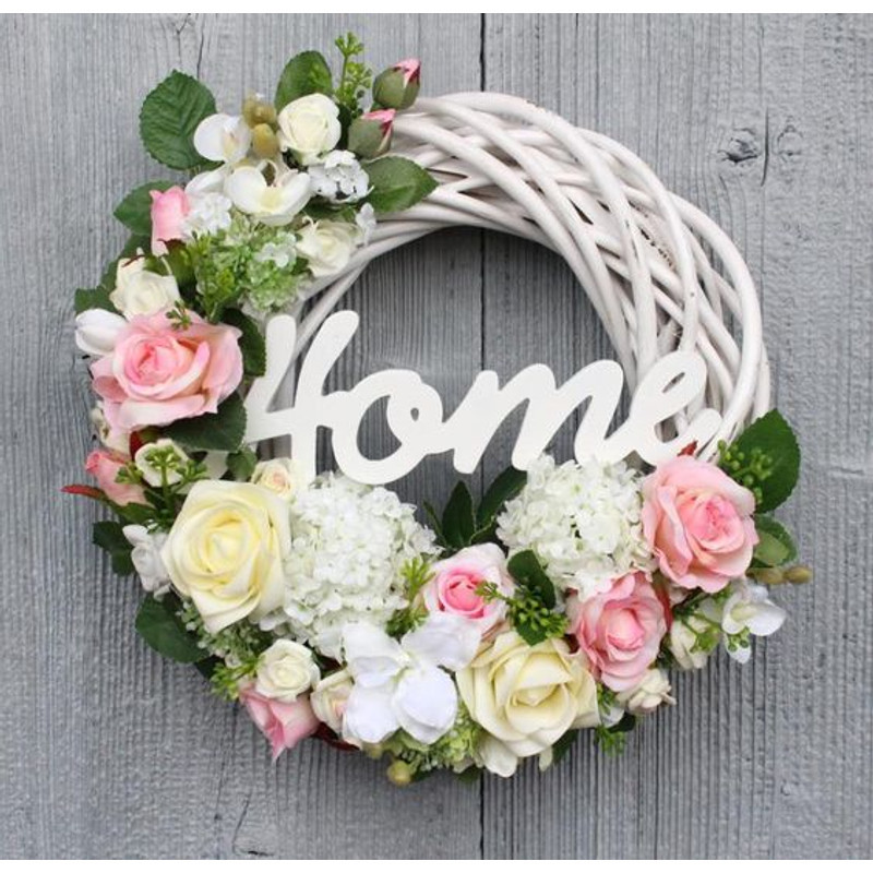 Natúr fa - "Home" írott felirat koszorúra 6,5x20cm