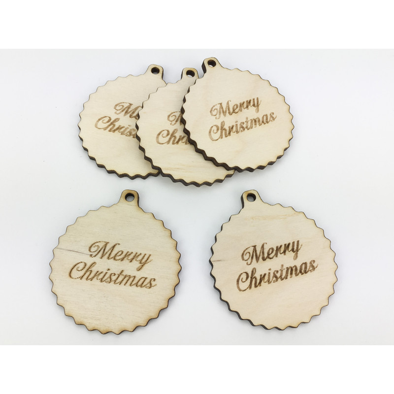 Natúr fa - "Merry Christmas" fodros gömb kicsi 5db/csomag