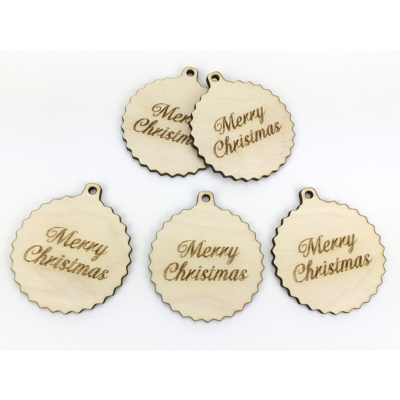 Natúr fa - "Merry Christmas" fodros gömb nagy 5db/csomag