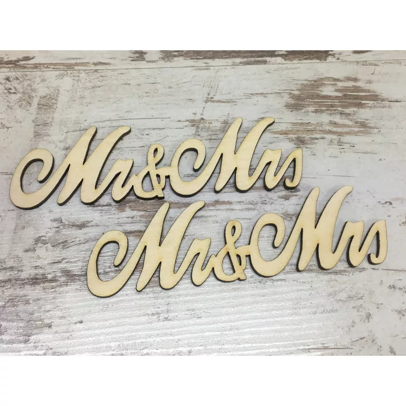 Natúr fa - "Mr & Mrs" irott felirat 14,5cm 2db/csomag