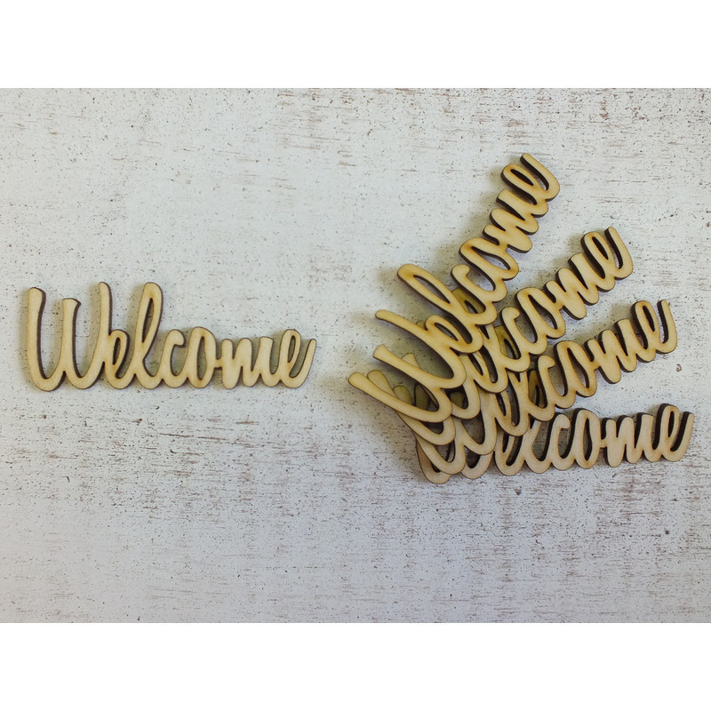 Natúr fa - "Welcome" felirat 9,5cm 5db/csomag