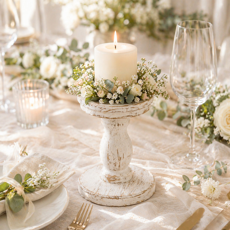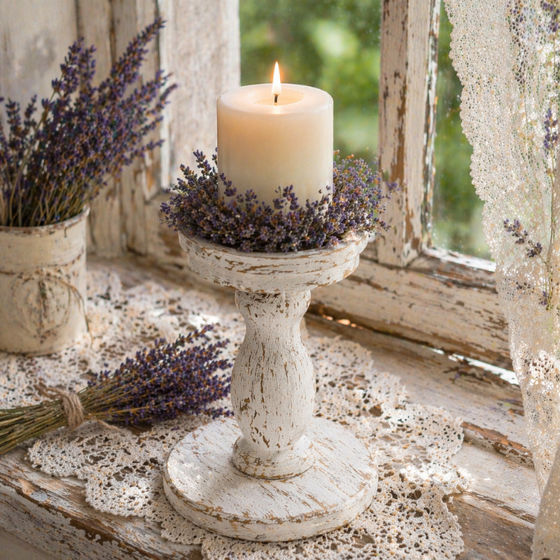 Rusztikus megjelenésű gyertyatartó, vintage-antik jellegű dizájnhoz.