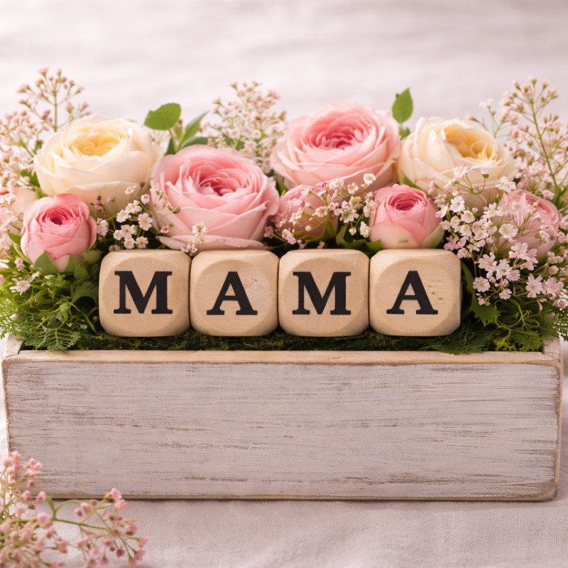 A saját gyártású nyomtatott fa dobókocka natúr - MAMA felirattal 2szett/csomag tökéletes választás anyák napi dekorációkhoz. A natúr fa megjelenés és a MAMA felirat meghitt, szeretetteljes hangulatot teremt. Ideális virágkompozíciókhoz, ajándékok mellé vagy kreatív díszítésekhez. A 2 szett lehetővé teszi, hogy több ajándékon vagy dekorációban is egységesen jelenjen meg, így még különlegesebbé teszi az alkalmat.