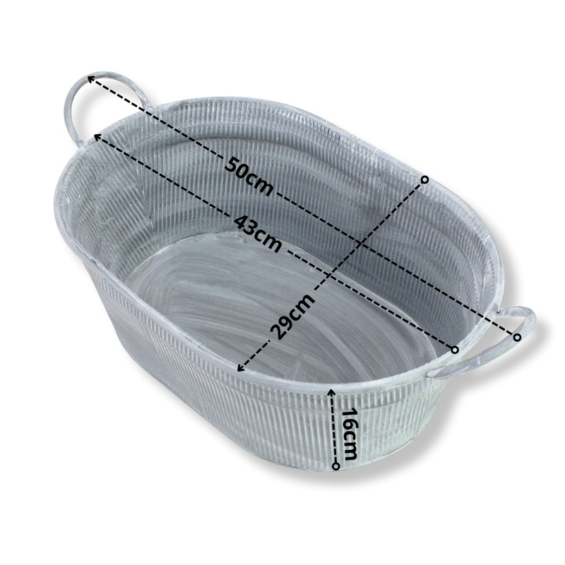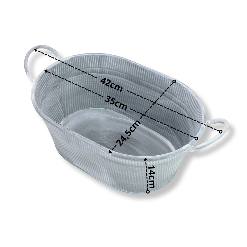 Ez a rusztikus hatású, ovális fém tartó igazán sokoldalú három darabos szett. Használhatod virágtartóként, jégtartóként egy nyári partin, karácsonyi dekoráció alapjaként vagy ünnepi rendezvények díszeként is. Strapabíró, mégis mutatós kiegészítő, amely bármilyen alkalomhoz stílusosan illeszkedik.