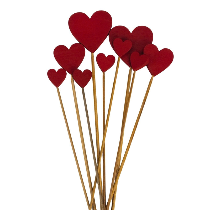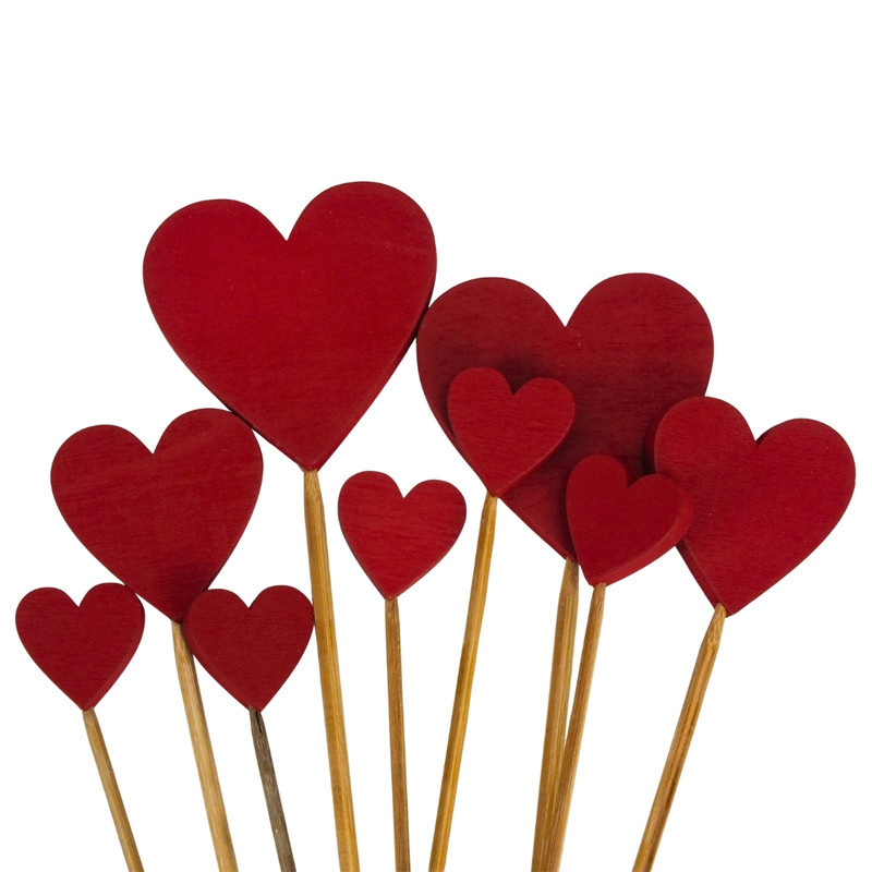 Piros fa szívek beszúrható vegyes 9db/csomag