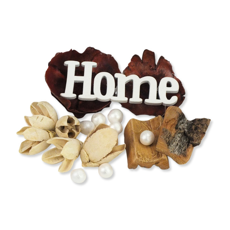 Vegyes tavaszi terméscsomag 'Home' felirattal dekoráláshoz.