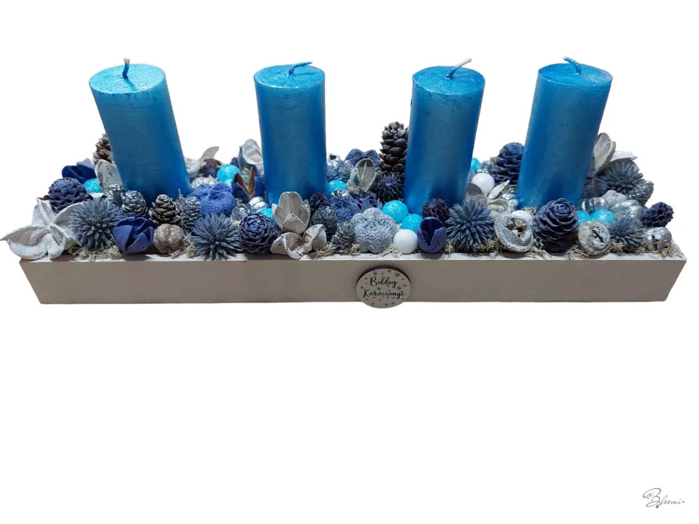 Adventi gyertyákkal díszítve (kék, antikolt hatású felülettel)