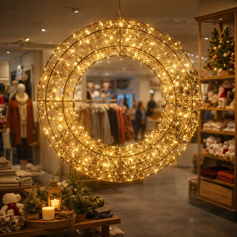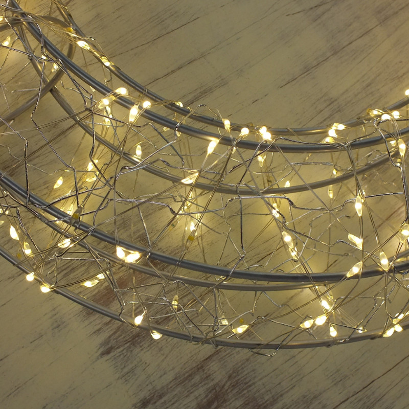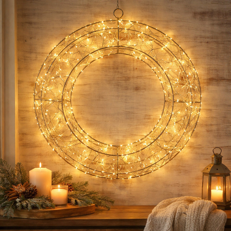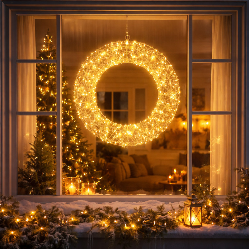Világítsd otthonodat stílusosan ezzel a 38 cm átmérőjű beltéri LED dekorációval! A meleg fehér fények kellemes hangulatot teremtenek, miközben az időzítő funkciónak köszönhetően a világítás reggel 6-tól este 18 óráig automatikusan működik. Összesen 350 LED gondoskodik a ragyogásról, melyből 150 villogó LED még különlegesebb fényjátékot biztosít. Tökéletes választás minden beltéri térhez, ahol a hangulatos világítás a cél.