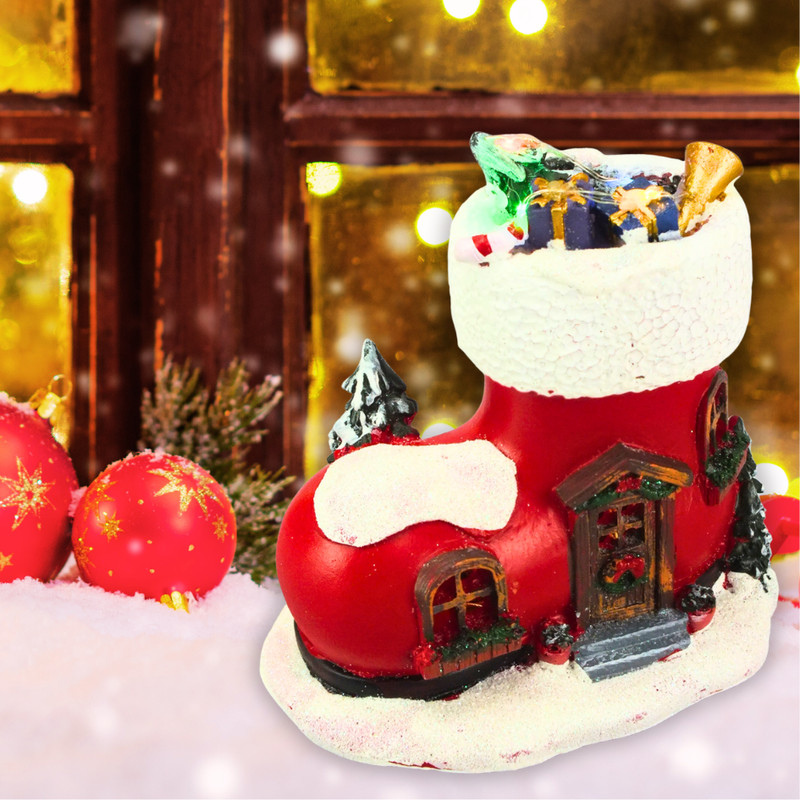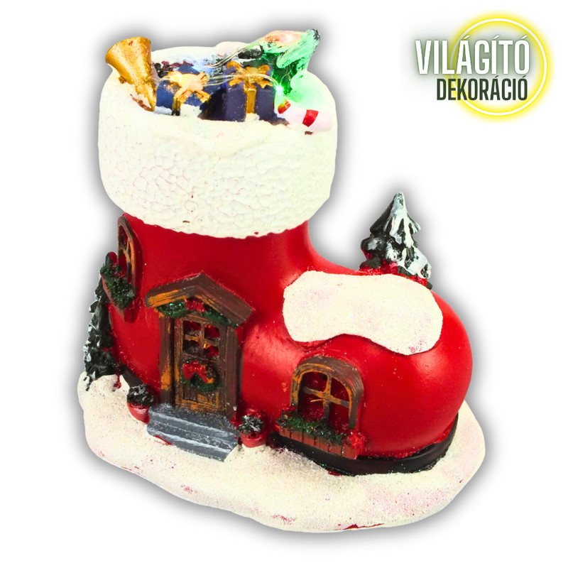 Igazi ünnepi hangulatot hozó LED világításos télapó csizma, amely meghittséget és ragyogást visz az otthonodba az ünnepi időszakban. A meleg LED fény kiemeli a csizma részleteit, így tökéletes dekoráció az asztalra, polcra vagy ablakpárkányra.