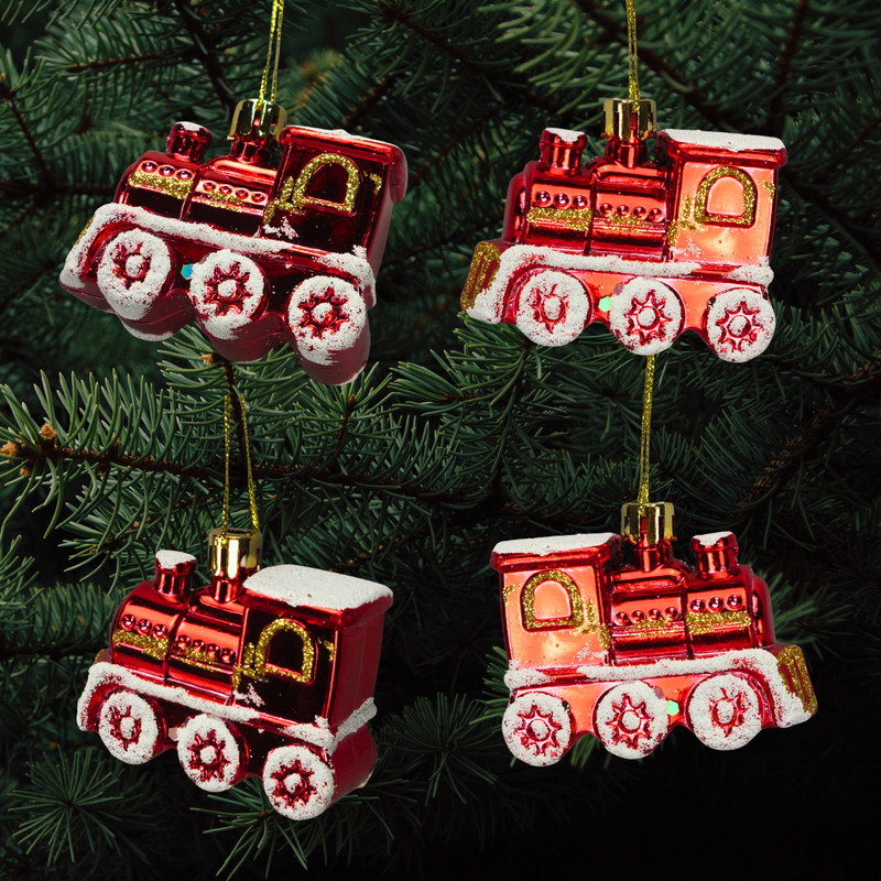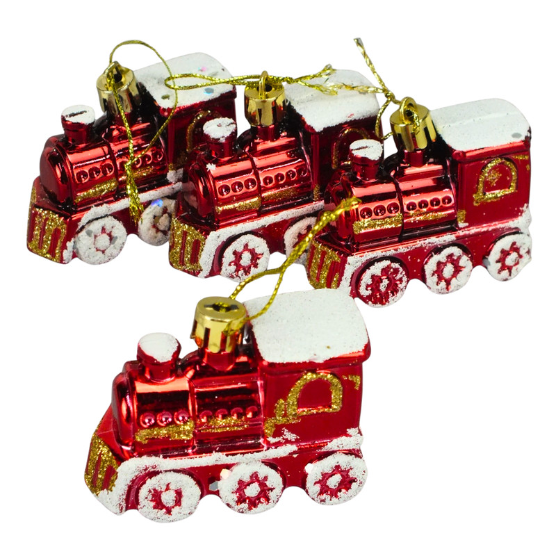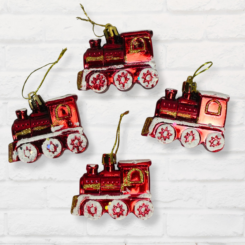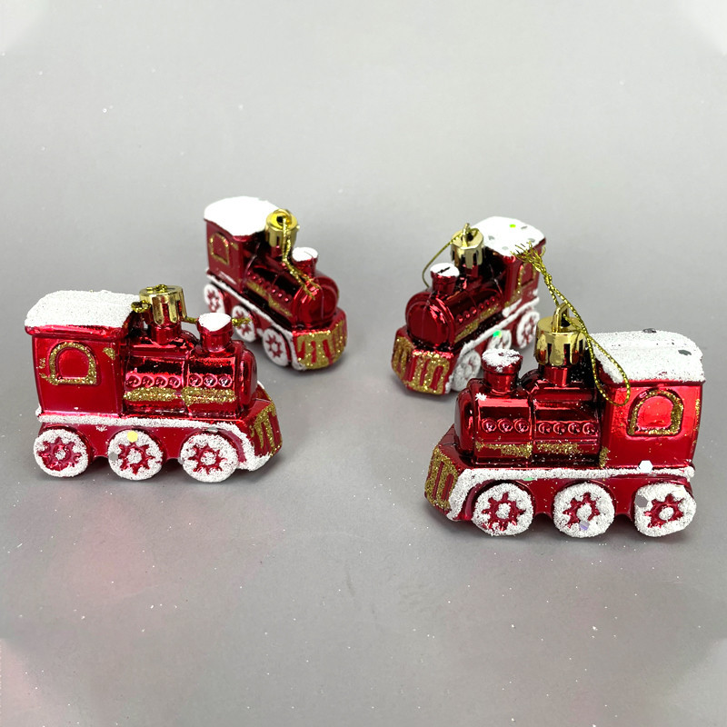 Csillámos karácsonyfadísz dekoráció: arany csillámos díszítéssel. 4db vonat dísz, akasztóval ellátva.