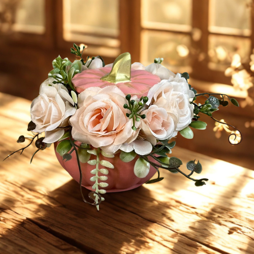 A Romantikus Rózsa DIY virágos tök dekor egy különleges, kézzel elkészíthető őszi asztaldísz, amely ötvözi a természetes szépséget és az eleganciát.