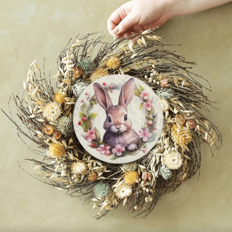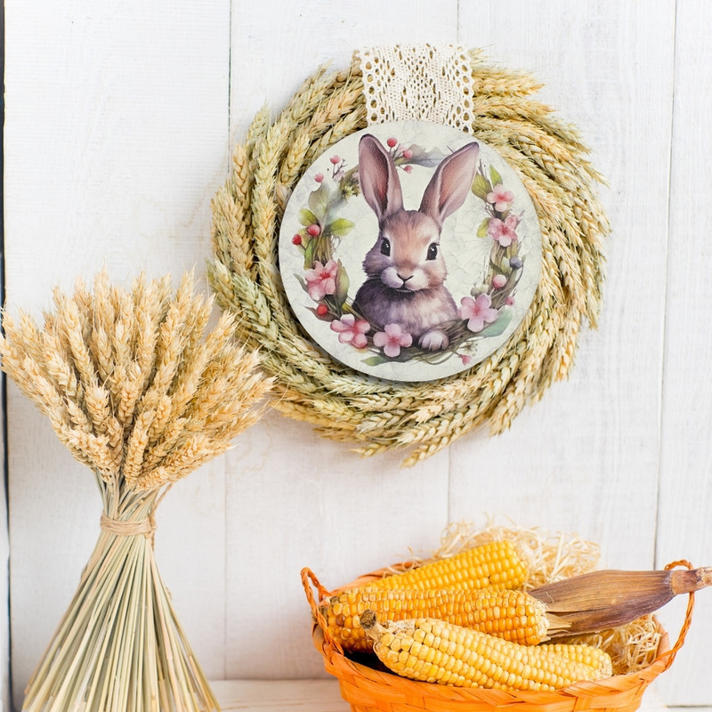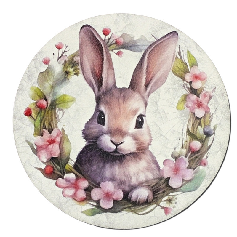 Igazán édes és vidám húsvéti dekoráció. Ez a termék tökéletes választás mindenki számára, aki szereti feldíszíteni a koszorúkat és ajtókopogtatókat ünnepi alkalmakkor. A fa tábla nyomtatott mintája egy aranyos nyuszi és színes koszorú, így tökéletesen illeszkedik a húsvéti díszítésekhez. Vásárolj egyet és tegyél egy kis vidámságot a lakásodba a húsvéti ünnepre!